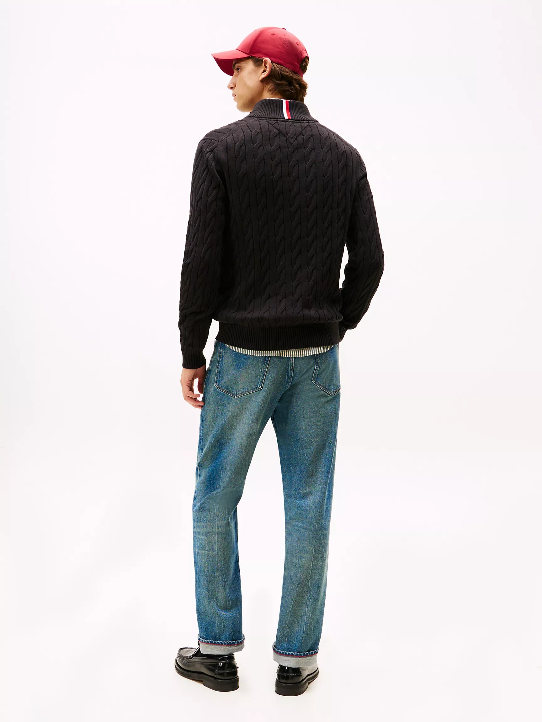 Cable Knit Mockneck Quarter-Zip Sweater