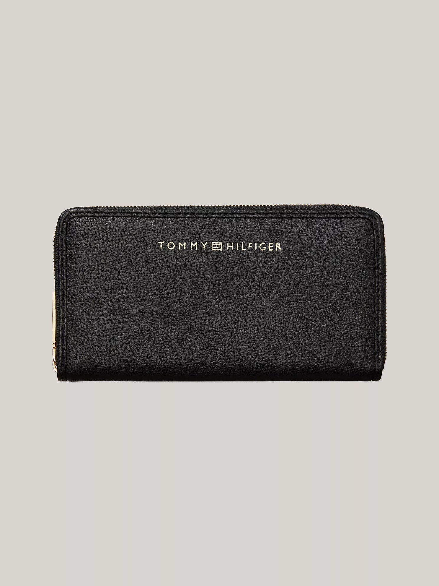 Tommy Hilfiger women's wallet. Keep a sleek profile with our zip-around wallet in a clean, classic silhouette. Inside, ample room for your cards and currency.